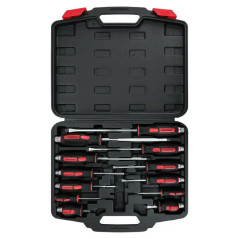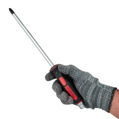 Zestaw obejmuje śrubokręty płaskie (SL) oraz krzyżowe (PH) w długościach od 38 do 200 mm. Dzięki temu poradzisz sobie zarówno z pracami precyzyjnymi, jak i z mocno dokręconymi śrubami w trudno dostępnych miejscach.